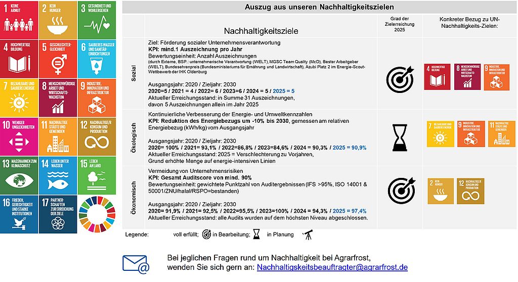 Bei jeglichen Fragen rund um die Nachhaltigkeit bei Agrarfrost, wenden Sie sich gerne an: Nachhaltigkeitsbeauftragter@agrarfrost.de.
